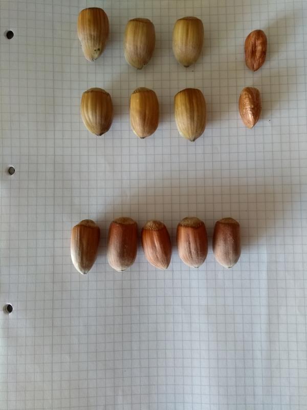 Heute habe ich Haselnüsse von meinen (''nur'') noch 3 verbliebenen Sträuchern aufgelesen. Ein Strauch produziert nur wenige Nüsse und fand noch dazu geschmacklich allenthalben den geringsten Gefallen. Da er noch dazu groß gewachsen z.B. Apfelhochstämmen reichlich Sonne nimmt, ist sein Urteil gefällt.