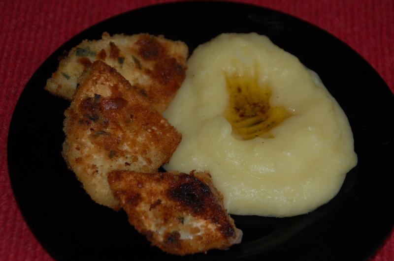 . Deshalb stand der Rest noch rum und wartete auf Verwendung...Heute Mittag panierte ich Selleriescheiben (Sellerieknolle, geriebene Semmel, Ei, P&S, gehackte Sellerieblätter). Dazu gab es (zu dünn geratenen) Kartoffelbrei. Die kleinen Kinder lieben Sellerie in dieser Form