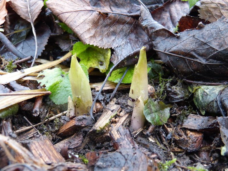 Wahrscheinlich liegt es an den milden Temp. . Gsd halten sich die meisten bei uns noch zurück.Helleborus foetidus schiebt dagegen schon kräftig Blüten.