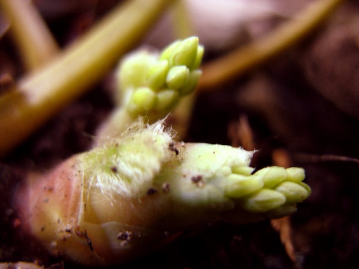 Endlich!Das erste zaghafte noch winterblaße Blättchen!Wahrscheinlich Epi x young. roseum :DLiebe glückliche Grüße,Mufflon