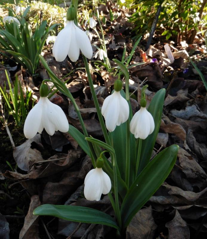 Ich habe durchaus auch weiße Beete, siehe unten, die G.nivalis vermehren sich hier wie blöd. In diesem Beet steht nur 'Walrus', die anderen "Schätzchen" sind auf der anderen Gartenseite. Da ich in den letzten eineinhalb Jahren etwa 25 Sorten gekauft habe, sind das fast alles auch Einzelzwiebeln, oder mal zwei oder drei. Auf Tuffs muss ich daher auch noch warten