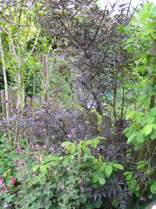 Das Schneiden macht mir nichts aus. Das reicht auch einmal im Spätwinter, klappt sei Jahren wunderbar. Passiert in einem Aufwasch mit den Rosen. An ein Gehölz dachte ich eben wegen dem Winteraspekt. Weiter rechts neben dem Holunder steht z. B. Aruncus dioicus, passt wunderbar dort hin, nur ist im Winter dort nichts davon zu sehen und muss sich jedes Jahr erst wieder in die Höhe arbeiten, also kein Sichtschutz von Anfang an...In kleinen Gärten muss man halt haushalten mit dem Platz der zur Verfügung steht. Oft heißt das halt schneiden, schneiden, schneiden....wenn man auch Gehölze unterbringen möchte.