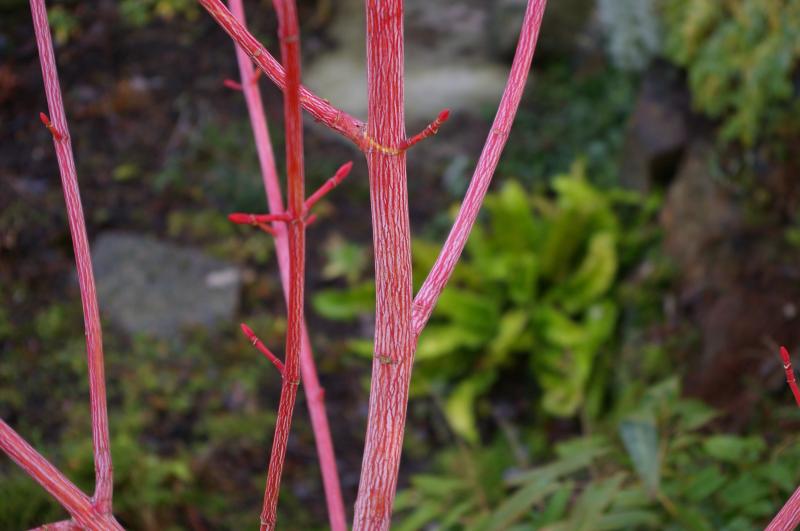 Im Vorbeigehen fielen mir heute Flecken auf der Rinde von Acer palmatum 'Seiryu' auf.