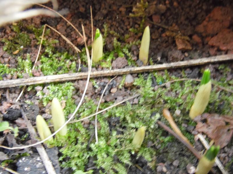 Natürlich blühen bei mir jetzt noch keine Krokusse. Doch so früh habe ich noch keine aus der Erde spitzen gesehen. Das müssten Ruby Giant sein.