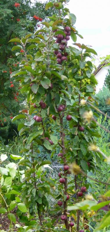 Der Säulenapfel war eine Fehllieferung, sollte damals der 'Maypole' sein, deshalb weiß ich die Sorte nicht.Möglicherweise 'Waltz'.Hatte in diesem Jahr viele Früchte, wird essen noch...
