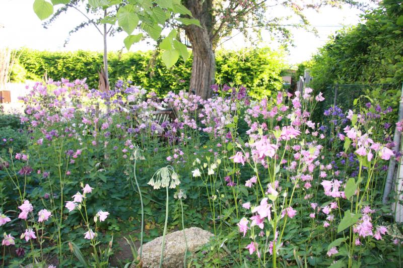 Man hat natürlich Vorstellungen. Der unübersehbare Vorteil eines alten gewachsenen Graten ist der oft sehr schöne Bestand an Gehölzen. Aber um trotzdem einen Garten zu schaffen der auch in den ersten Jahren schon anschaulich und gestalterisch gut aussieht haben wir, obwohl ich Nadelgehölze nicht so liebe, auf diese zurück gegriffen. Schnellwachsende Sträucher sind auch Alternativen. Man schafft schattige Bereiche und sorgt im kleinen dafür das Pflanzen geeignete Plätze finden. Bei uns fühlen sich nach ca. zwei Jahren sehr viele Pflanzen wohl. Allerdings bin ich immer geneigt den Samen einfach zu verteilen. Ich denke auch eine kleine Wildblumenwiese könnte dazu gehören.Unsere kleine WBW im ersten Jahr