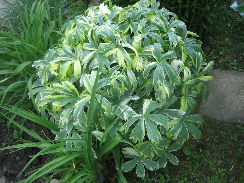 Am Anfang meiner Gartenkarriere war ich total fasziniert von panaschierten Gehölzen und Stauden. Als dann aber der Eschenahorn 'Flamingo' schnell an Höhe und Umfang zunahm und in der Nähe einer übernommenen panaschierten Weigelie viel zu unruhig wurde, habe ich ihn entfernt. Bei Stauden habe ich aus dieser ersten Zeit lange Zeit der Astrantia major 'Sunningdale variegated' die Treue gehalten. Der Frühjahrsaustrieb zwischen den Taglilienblättern war immer besonders hübsch. Allerdings fand ich die Blüten zum Laub nicht optimal.