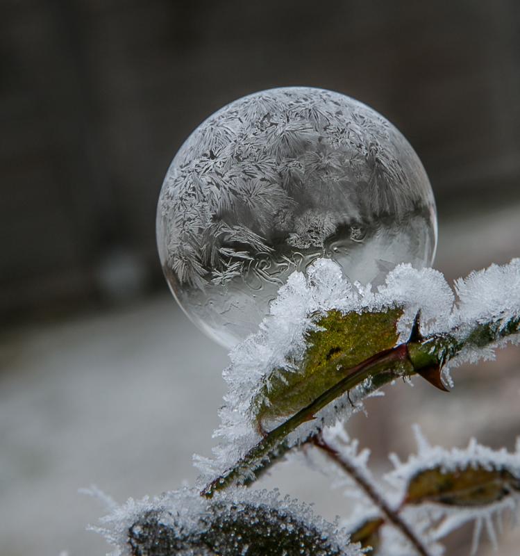 Da die Kälte mitspielt eine gefrostete Seifenblase.