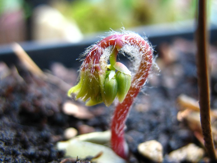 Endlich!Das erste zaghafte noch winterblaße Blättchen!Wahrscheinlich Epi x young. roseum :DLiebe glückliche Grüße,Mufflon