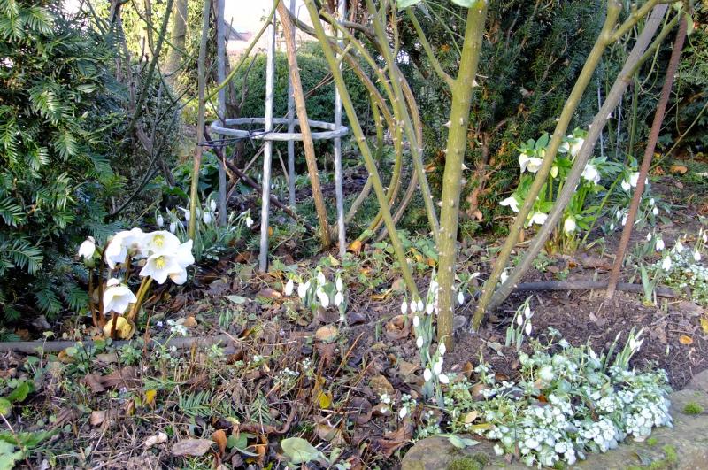 So sehen meine entblätterten Helleborus jetzt den Gehweg entlang aus: