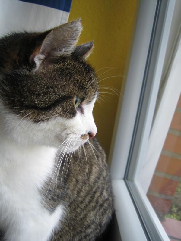 Bienchen, auch von mir Toi, toi, toi für Maja! Wie gehts ihr denn jetzt?Nemi, Du bist so besorgt um die kleine Rauftante- so ein Engagement findet man wirklich nicht alle Tage! :-*Unsere beiden haben es heute früh geschafft, die Schlafzimmertür zu öffnen. Kreiselchen hat, auf der Stuhllehne balancierend, die Klinke gedrückt, Sita hat von unten die Tür aufgeschoben. Mal sehen, ob das ein Zufallstreffer war oder ob es jetzt mit der ungestörten Nachtruhe vorbei ist.