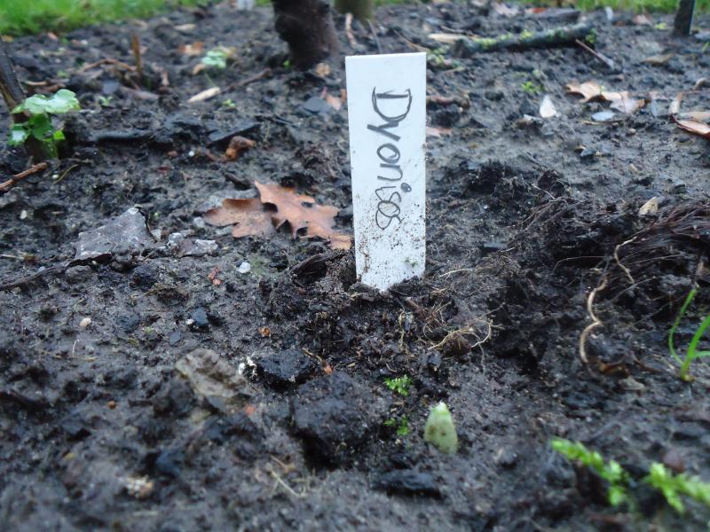 Schild steckt doch da. Könnte passen. Hattest doch so nen angefressenes Zwiebelchen.Könnte das der Austrieb meines 'Diggory' sein?