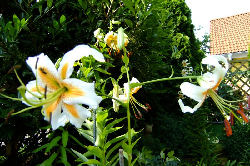 Na, na Markgräfin von Pieske! Immer ruhig bleiben!Vielleicht kann der Titel geändert werden? Lilien - spätblühende Arten/Sorten.Wegen des Platzbedarfs der Lilien. Wenn sie blühen, hängen die Stängel etwas über. Nachdem meine Beete übervoll und nicht sehr breit sind, stäbe ich alle Stengel kurz vor der Blüte.Auf den Fotos sieht man die Metallstäbe.