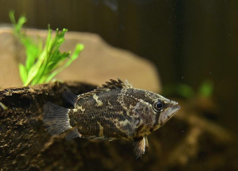 Und der "jüngste" im neuen, kleinen Becken: Polycentropsis abbreviata, der Afrikanische Vielstachler.