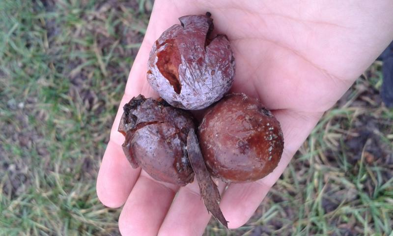 ....und???? sind da noch Kerne drines liegen massig braune früchte drunter. die meisten sind allerdings bereits aufgeplatzt.