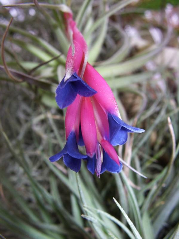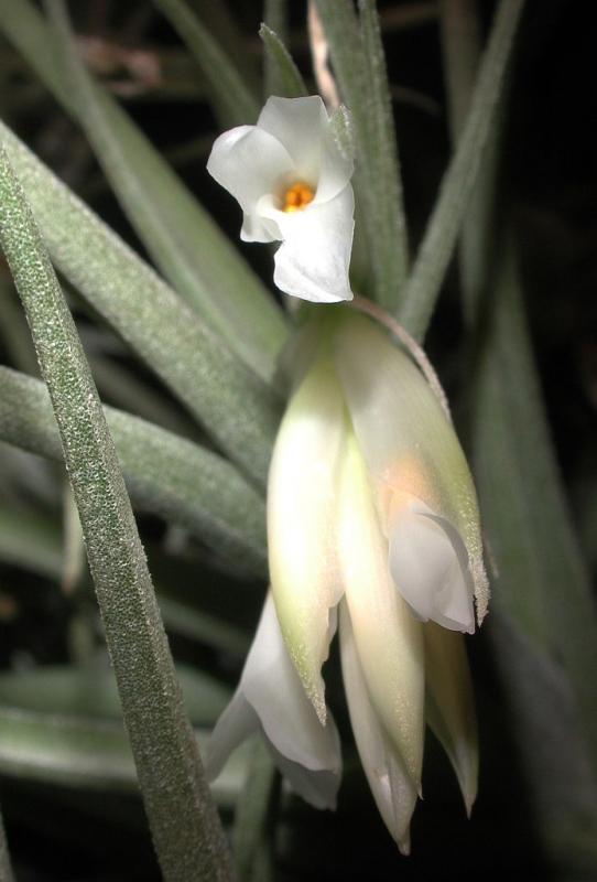Sie blühen dabei regelmäßig, manche in weiß wie diese Tillandsia aeranthos alba, ...