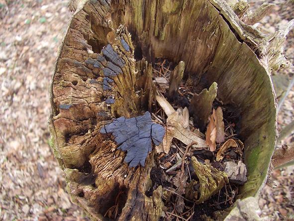 In einen morschen Baumstumpf hineinfotographiert. Der Baum wurde vor ca. 4 Jahren gefällt. Oft sitzen die Vögel darauf und holen sich Insekten raus.