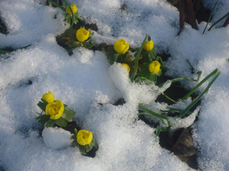 Auch bei mir blühen die ersten Eranthis hyemale, in Schwaben. Pumpot, ich hätte da eine Frage - Die ganzen Eranthis die Du zeigst - Zitronenfalter, Lightning, Winterzauber und Euan Bunclark, machen die auch Samen?