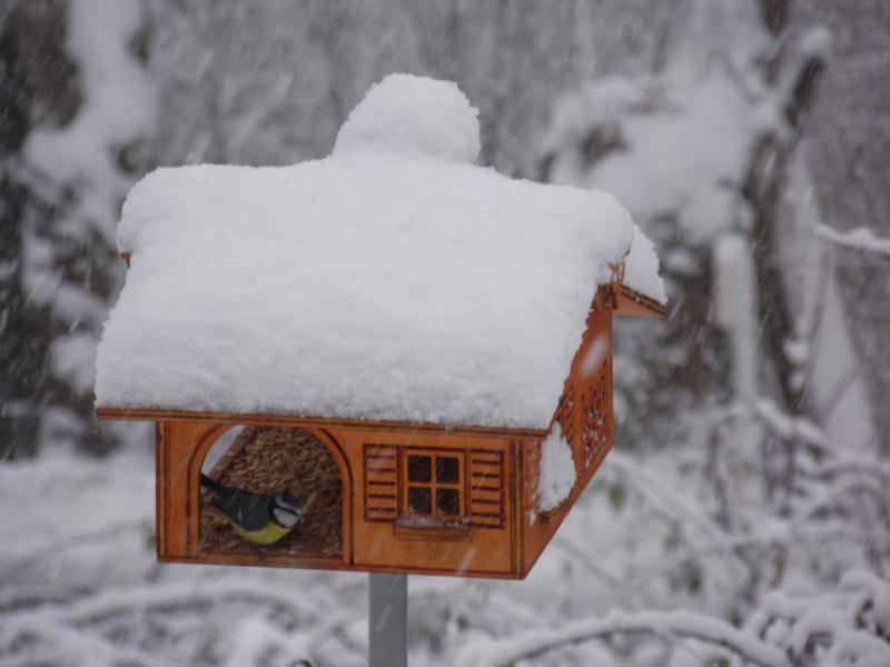Gestern war es den ganzen Tag sonnig und windig. Im Schatten taute der Nachtreif nicht weg. Tmax 4° C.Heute Morgen um 7°° Uhr war alles leicht überzuckert. Danach ging es mit immer kräftigeren Schneefällen richtig los. Der Wind blies immer wieder in Böen die Flocken waagrecht vor sich her. Takt -0,6° C, 91% rel. Luftfeuchte, böiger Wind, leichter Schneefall, Schneedecke von ca. 7 - 8 cmHeute Früh habe ich auch gestaunt, als Wetteronline nur noch 2 Tage mit Tiefstwerten im zweistelligen Minusbereich brachte, dafür knackige -16° C. Eine Korrektur kam wenig später und eine weitere vor wenigen Minuten. Die letzte verheißt nicht gutes. Frühwerte für kommende Woche: Mo -18° C, Di -17° C, Mi -13° C, Do - 15° C, Fr -12° C und Sa -13° C. Danach soll es wieder einstellig werden.