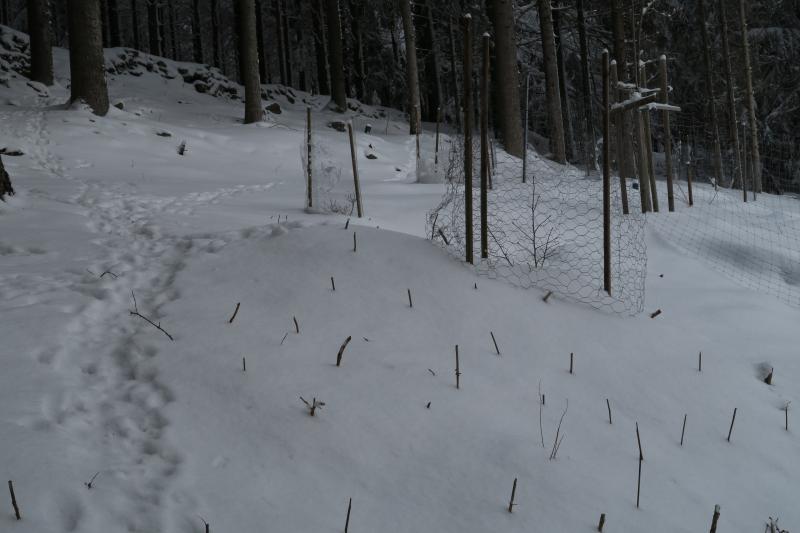etwas mehr als 30 cm Schnee liegen im Waldrandgarten...und erfreulicherweise keine Wildspuren innerhalb der Einzäunung
