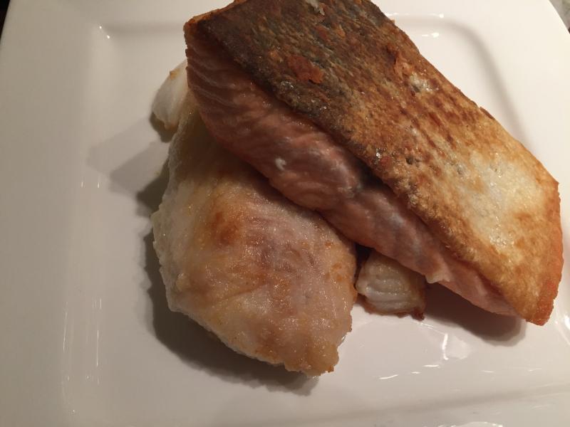 Kabeljau auf Ingwer, Zwiebel und Sojasouce gebraten. Danach alles auf Spinat in der Röhre gebacken. War gut