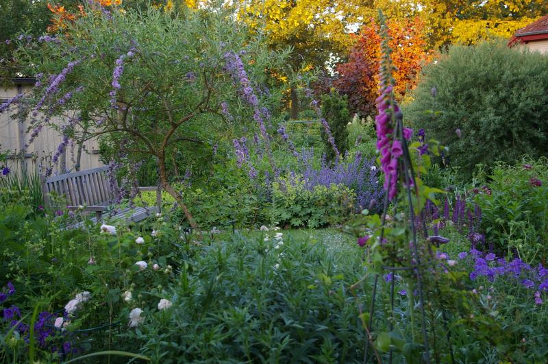 Grösser werdende Sträucher als Stämmchen ziehen, wäre noch eine Möglichkeit. Ich habe es mit Buddleja alternifolia gemacht. Hier ein Bild als er noch relativ klein war. Er wächst schnell und wird 2 bis 3 Meter hoch.