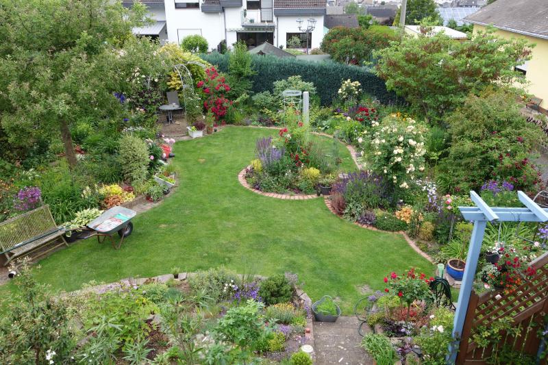 Jetzt hab ich lange nachgedacht, welchen Titel ich meinem Faden geben soll......Zuerst das Problem:Meine Buchsumrandung (Bilder sind von heute) hat massiven Zünslerbefall, muss also weg. Ich bin für Neues offen - aber - die Staudenbepflanzung innerhalb der Beete mag ich lieber nicht ändern, da ich lange dran rumgetüftelt habe und jetzt damit endlich zufrieden bin.Die Geschichte des Gartenteils: Buschs habe ich vor 11 Jahren gepflanzt, die Beete waren bis 2010 Gemüsebeete, habe ich aber aufgelassen wegen der Schnecken und weil der Buchs die Beete 'leergefressen' hat. Dann, 2010, bekamen drei Beete innen Wurzelsperre wegen des Buchses und ich habe daraus 3 Staudenbeete gemacht, weiss mit gelb/orange, weiss mit blau und weiss mit rot. Das vierte Beet beherbergt mein Hochbeet. Dort, wo sich in der Mitte die Wasserleitung befindet, steht in jedem Viertel je eine Rose. Davon zeige ich euch noch später Fotos. Die Gräser bzw die weissen Stauden sind durchgängig dieselben. Der Gartenteil ist vollsonnig und trocken, auch dass habe ich beachtet.Es ist die Nordwestecke meines Gartens, dahinter, wie ihr seht, Wiese und ein Nachbarhaus. Bis zum Zaun befinden sich im Westen und im Norden: ein ca. 80cm Rasenstreifen und dahinter 80cm tiefe Beete die Zäune entlang. Am Zaun an der Westseite wachsen unter anderem 3 Eiben, die noch relativ klein sind und 6 Clematis. An der Nordseite sind es einige Rosen und dazwischen arbeite ich schon jahrelang an einer Eibenlehne für eine Gartenbank, ist aber noch nicht so weit.Ich habe im ganzen Garten Rindenhäksel als Beetabdeckung.Jetzt suche ich Ideen, wie ich den Charakter und die Innenbepflanzung der Beete ohne Buchs erhalten kann......