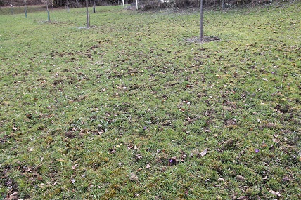 Noch ein Update:Trotz der Wildschweinschäden sind ein paar Krokusse doch noch gekommen. Allerdings nur sehr wenige. Durch eine großzügige Schneeglöckchenspende konnte ich aber die Lücken mit Schneeglöckchen ausbessern und auch für die Zukunft ein weißes Band an einem Wiesenrand anlegen.Im Bild die am schwersten von Wildschweinen verwüstete Stelle nach dem Aufräumen und Schneeglöckchen pflanzen.