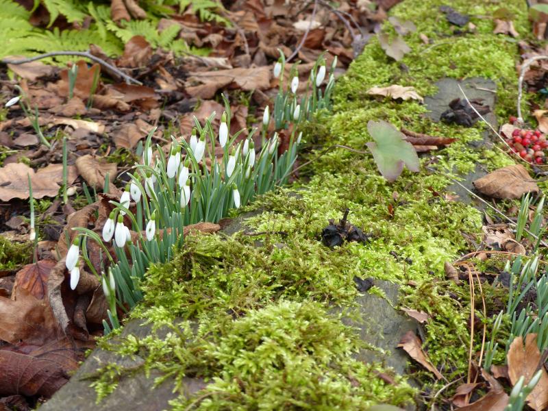 Nur in Worten: Glückchen, Helleboren, einige Winterlinge haben es doch noch getan, Chrysosplenium macrophyllum, Hep. 'Blumenstadt Erfurt', Cyclamen und die ersten Anemönchen.