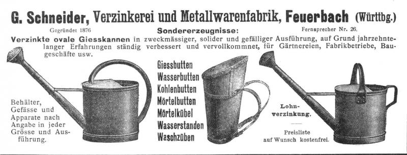 und war nicht ganz sicher ...Die Jubiläumsschrift "100 Jahre G. Schneider" bietet übrigens nichts Neues. Es ist zwar eine alte Rechnung abgebildet, doch leider hatte der betreffende Kunde ausgerechnet keine Gießkanne geordert.