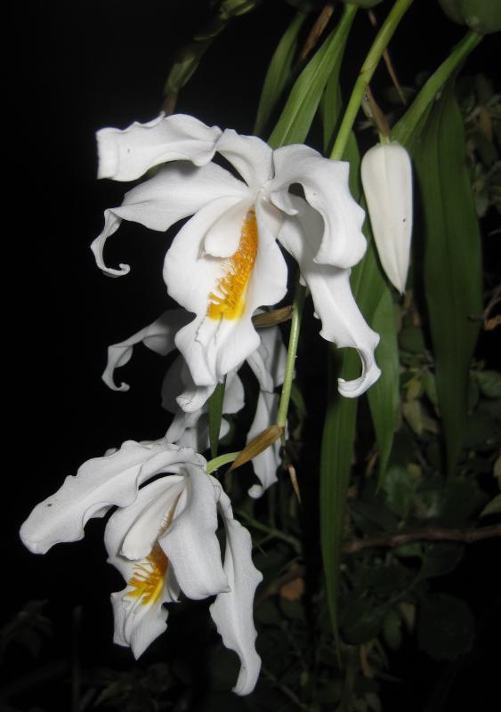Sehr apart! Und noch nie gehört...Hier blüht Coelogyne christata.