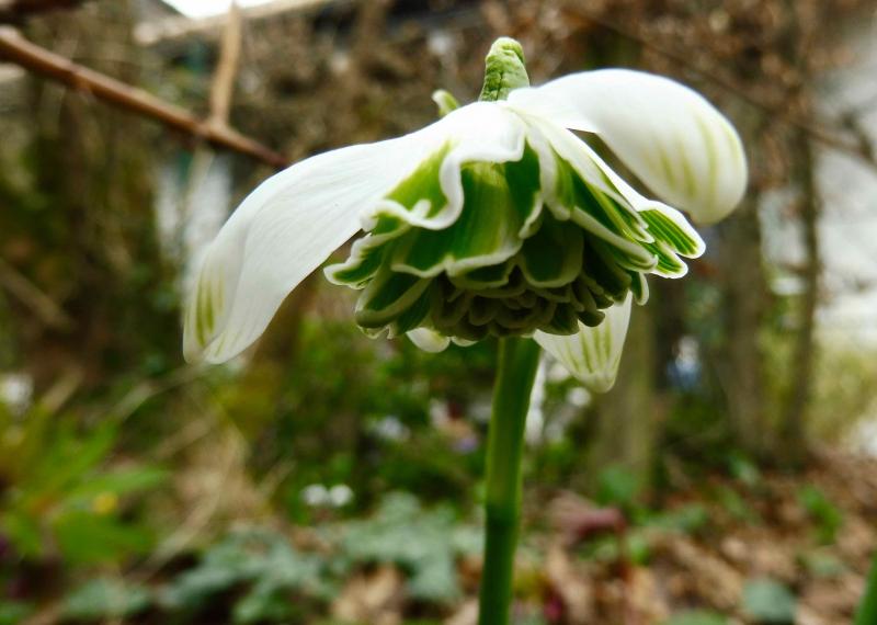 Einige gefüllte habe ich doch, so Gal. plicatus 'Oreanda' (eine Ruksans-Pflanze, von zwerggarten getauscht) hat sich schon gut vermehrt - hier die Blüten von oben: