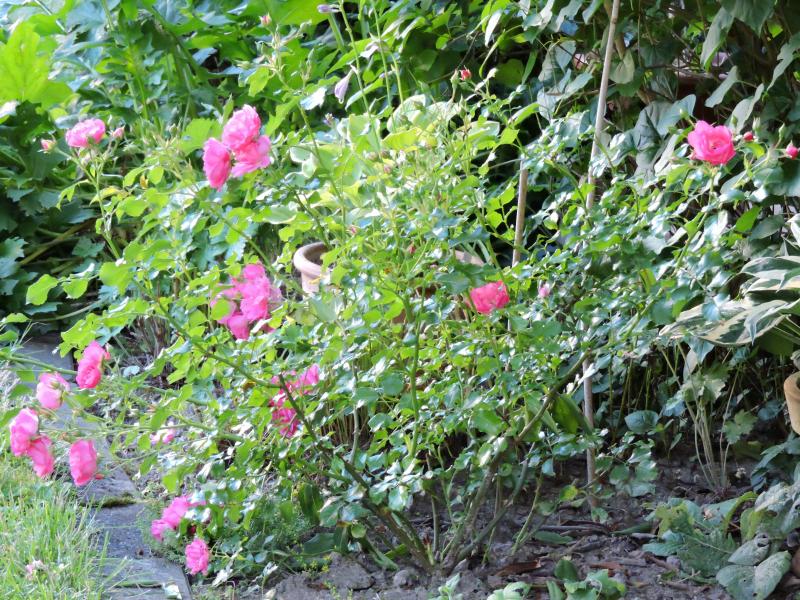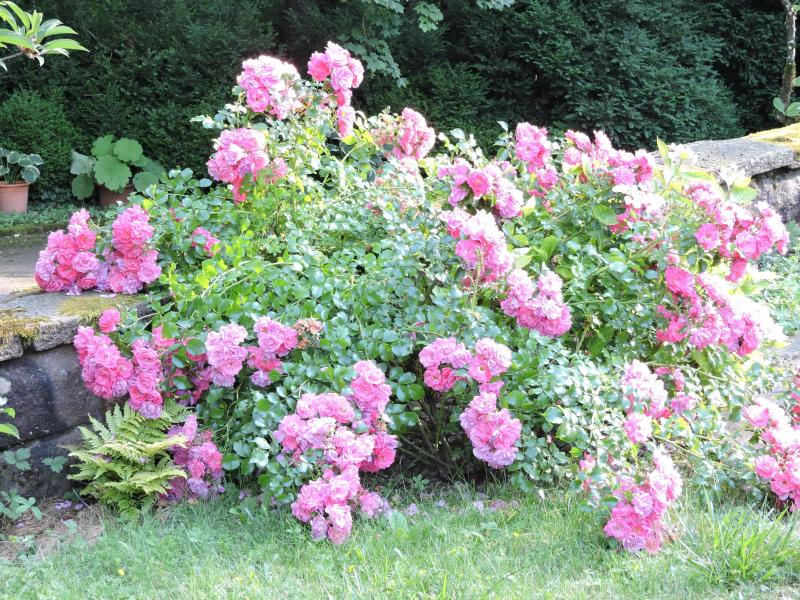 Halbgefüllte wären da wahrscheinlich eher zu empfehlen, eine schöne Rugosa wie z.B. Louise Bugnet putzt sich selber; aber wenn doch gefüllt und kräftigrosa, würde ich die KvD bevorzugen.