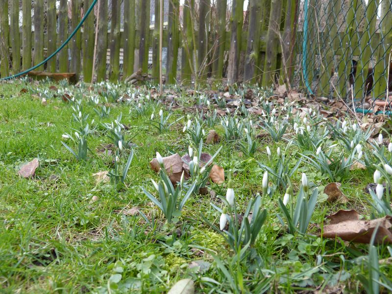 Ich muss ja ehrlich sagen - und setze mich damit wohl ziemlich in die Nesseln - dass Schneeglöckchen in Wiesen auf mich immer verhungert und traurig, winzigklein und wie ein Schatten ihrer selbst wirken. Richtig glücklich sehen sie in und unter Hecken aus und auch in Staudenbeeten... daher sind sie bei mir alle in Beeten und ich rette auch alle Sämlinge aus der Wiese...