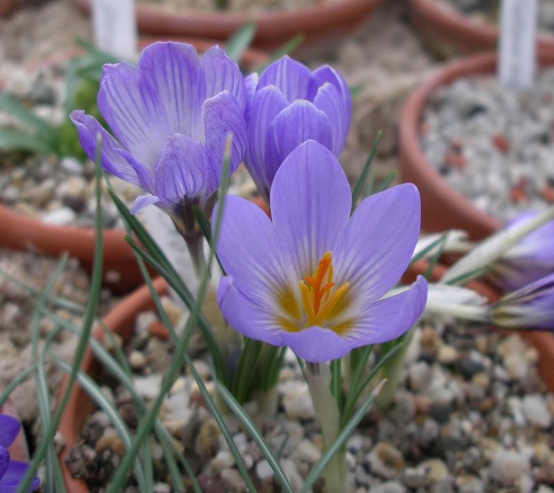 Da die Blütenblätter breiter ausschauen und nicht schmal, wie bei Crocus tommasinianus und die Blüten kelchförmig und nicht sternförmig zu sein scheinen, könnte eine Art oder Sorte aus der Crocus vernus-Gruppe beteiligt sein. Zumindest denke ich das bei den Pflanzen die Staudo gezeigt hat, wenn deine die für Crosus tommasinianus typische Sternförmig haben, sieht das natürlich anders aus, farblich ist die Art ja sehr variabel.