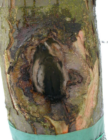 Hier kommen jetzt mal ein paar Fotos von meinem oben beschriebenen Apfelbaum.Die ersten Wunden entstanden am Stamm.