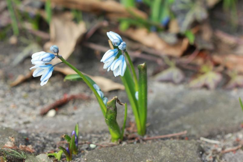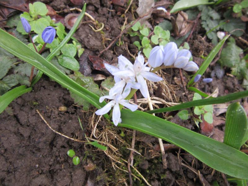 meine Blausternchen, Scilla bifolia, habe ich alle während der Blüte ausgebuddelt. Dieses hier wegen der weißen Blüte.