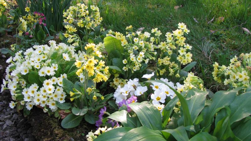 Hier primelt es auch schon kräftig :DAm besten halten sich neben den elatior und veris die ausgewilderten Baumarktprimel. Die ganzen Cowichan sind im Winter 2012 verschwunden. Auch die rotlaubigen halten nicht lange durch. Blöd, daß ich gestern schon wieder so eins gekauft habe ::)Letztes Jahr wollte ich in Sachen Primel aufrüsten aber die Trockenheit haben die meisten nicht geschafft.Drum gibts jetzt nur so gewöhnliches zu sehen.Dieses hält schon drei Jahre die größte Trockenheit aus