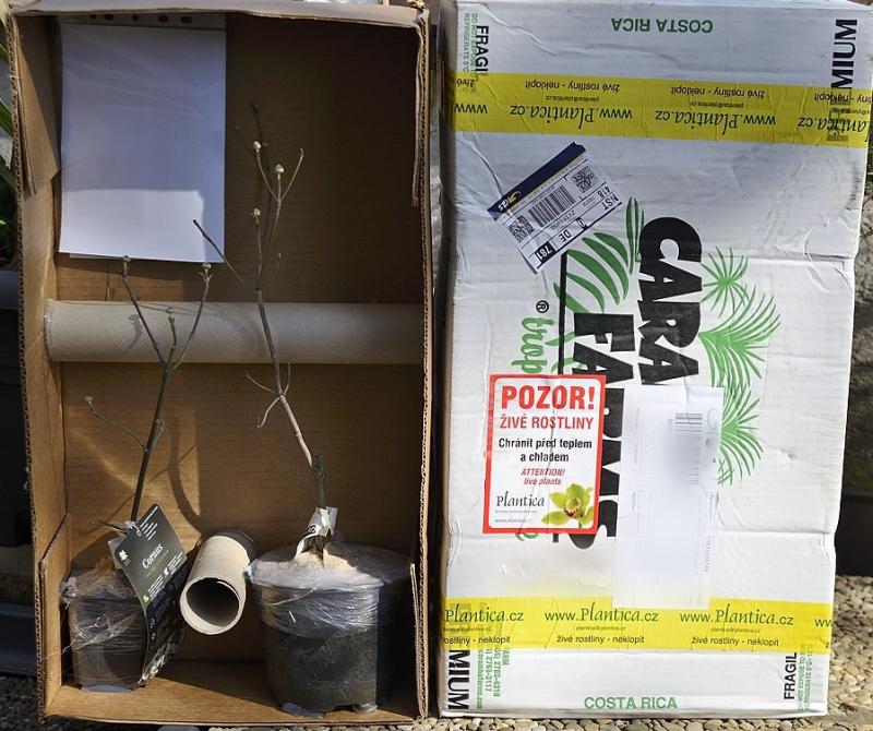 So ist es.Eben kam eine kleine Lieferung von Planica aus der Tschechei. Sowas hatte ich auch noch nicht: Die beiden kleinen Gehölze waren sehr sorgfältig verpackt, und die Töpfe sind mit Silikon am Boden des Pakets befestigt! Das nenne ich Transportsicherung!