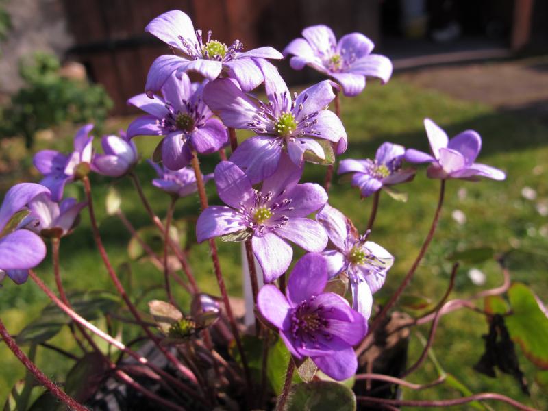 Langsam öffnet sich das Lieblingshepatica meiner Frau . Hepatica nobilis Rote Glut, eine Selection von Peters.Im Tausch bekommen, sonst ist sie fast nicht zu haben. Die Farbe ist wirklich so dunkel.