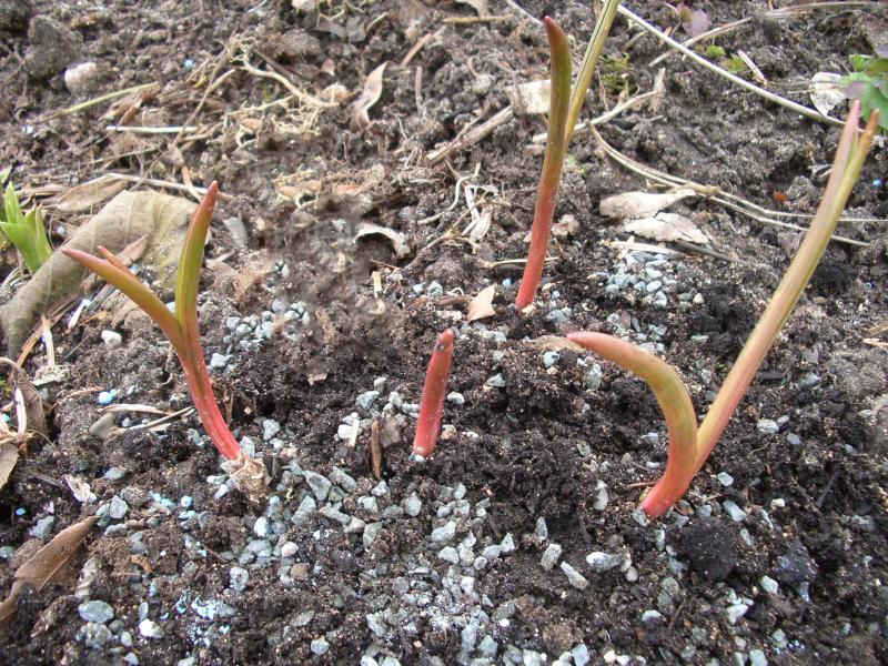Es scheint, als kommen mehrere Austriebe aus dieser Zwiebel, daher sieht es nach "viel" Laub aus. Dann bin ich gespannt auf die restlichen Zwiebeln, von denen überwiegend noch nichts zu sehen ist (kann ja nicht die einzige von 25 gesetzten sein).