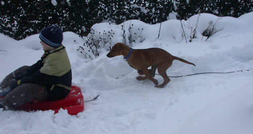 :-XDa lach ich aber nicht mehr. Meine kaempfen sich gerade zu dritt mit Herrchen durch den vielen Neuschnee! Vor allem unser Neuzugang: Als zu heiss gewaschener Labrador bekommt sie langsam Probleme noch vorwaerts zu kommen