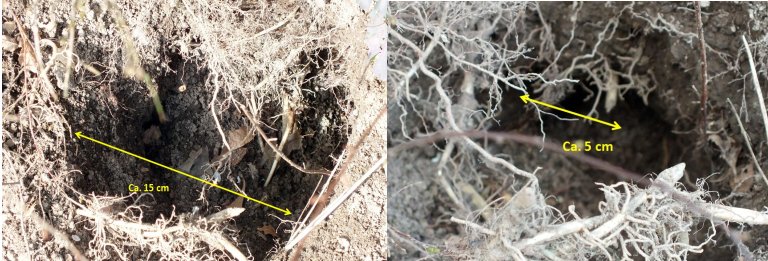 Hallo zusammen!Ich habe mich hier neu angemeldet in der Hoffnung, von eurer Fachkenntnis profitieren zu können. Schon vor längerer Zeit sind uns und unserem Nachbarn "Angrabungen" (ca. 10 x 20 cm) im Garten aufgefallen, die wir nicht zuordnen können. Heute nun haben ich einen eigenartigen Bau im Randbereich einer Buschwurzel entdeckt. Er besteht aus einer Ausgrabung mit ca. 15 cm Durchmesser und von dort ausgehend einem Gang von gut 5 cm Durchmesser (siehe Fotos). Es gibt weitere Ausgänge. Für Mäuse zu groß. Für Karnickel zu klein. Hat jemand eine Idee, was für ein Viech das sein könnte?Liebe GrüßeLucie