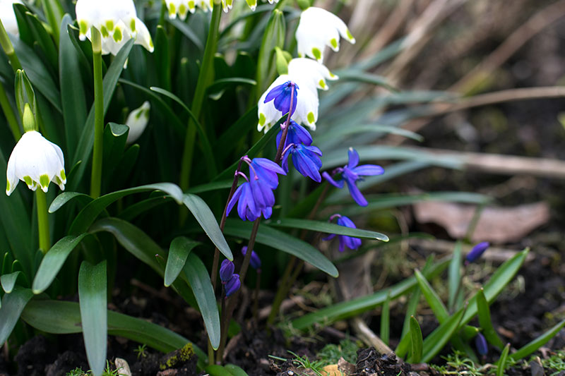 Nochmal genauer hingeschaut: Scilla bifolia 'Rosea' scheint früher auszutreiben, als die Normalform. An sehr schattigem und damit länger kühlem Standort spitzt die Normalform neben den bereits knospigen 'Rosea' gerade erst heraus. An anderen Stellen im Garten blüht sie hingegen sogar schon.Wühlmäuse fressen auch Scilla (und auch Muscari...).