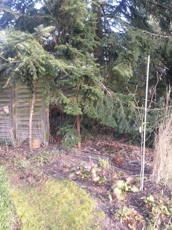 Nochn BildDer lange Ast stützt also nur den Fichtenzweig - den kann ich auch komplett kappen, wenn er zu sehr stört - macht aber einen sehr romantischen an dem kleinen Weg. Links daneben eine Anabell (wird gewässert) rechts leicht dahinter ein Seidelbast, der ums Überleben kämpft - er treibt an den Spitzen aus - blüht aber nicht.
