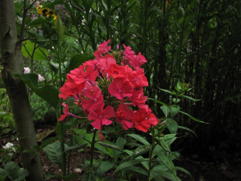Ich habe einen roten Phlox, den ich im Herbst vor zwei Jahren kaufte (ob blühend, weiß ich nicht mehr). Er hat kein Etikett, so auch keinen Namen.Es wäre schön, wenn jemand eine zündende Idee hätte. Danke für's Kopfzerbrechen