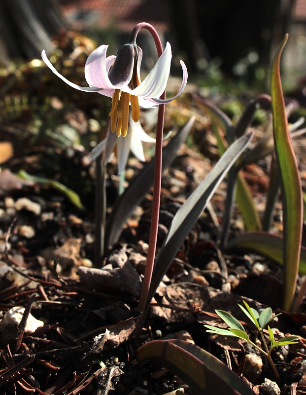 das dürfte Erythronium californicum sein. aus samen herangezogen + falsch benamst worden...es steckt ein schildchen mit E. oregonum drin. der sieht aber anders aus. humoser boden im schatten bzw. jetzt im frühling ohne gehölzschatten natürlich sonnig.
