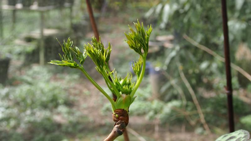 einen Ausläufer einer Paeonia delavayi, die orangefarben blühen soll, bekam ich letztes Jahr geschickt. Danke dem Spender! Gute Nachrichten! Sie treibt aus und zeigt Knospenansatz.