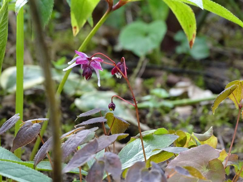 Die ersten Epimedien fangen an zu blühen, hier Purple Pixie: