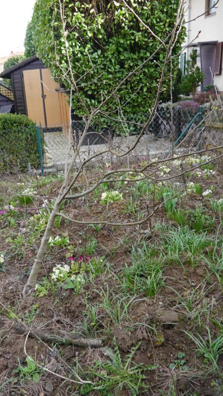 Hey Leute,wow, danke für die vielen Antworten. Und so schnell, hier ist ja echt viel los im Forum!Ja, 5 Jahre alt könnte er sein, ok, ich sehe, meine Überschrift "jahrelang ungepflegt" war dann nicht ganz passend ;)Mit dem Pfahl werde ich das versuchen. Ich kenne das bisher nur von meinen Zimmerpflanzen und da musste ich sie immer an der Zimmerwand oder Gardinenstange befestigen, weil Gummibaum oder Palme so stark waren, dass der Pfahl mit ihnen umgekippt wäre. Nungut, im Topf ist ja auch begrenzter Spielraum nach unten. Aber so ein Baum scheint mir deutlich kräftiger. Wie tief muss ich den Pfahl denn in die Erde setzen, damit das hält? Und welche Art Befestigungsmaterial könnt ihr empfehlen, damit nichts in die Rinde einschneidet?Wie war das jetzt mit dem Zurückschneiden? Soll ch das trotzdem machen, auch wenn ich es erstmal ohne ausbuddeln versuche? Und wenn ja, geht das jetzt von der Jahreszeit her?Sorry, viele viele Fragen...LG, M.PS: @ lonicera66: Ja, ich denke auch, dass ein krummer Baum seinen Reiz hat. Aber ein bisschen gerade würde ihm schon gut tun. Der ist schon echt seeeehr schief und wenn er Früchte trägt, ziehen die seine Äste zum Teil bis auf den Boden...@ Wühlmaus: Der Boden wird eigentlich immer sehr gelobt, zumindest was die Nachbarn sagen, die schon länger hier wohnen. Das Bild ist event. etwas irreführend, weil wir rund um den Baum einen Aushub Erde abgeladen hatten, den wir an anderer Stelle machen mussten. Und bei der Übernahme des Grundstücks sah es ganz anders aus, vollkommen verwuchert mit dreimal so viel Unkraut und Zeugs...